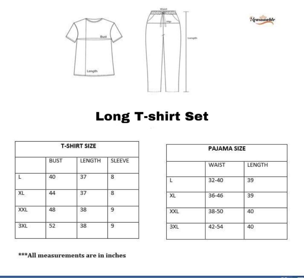 Women’s Premium Long T-shirt & pajama Set 2pc-Bekary