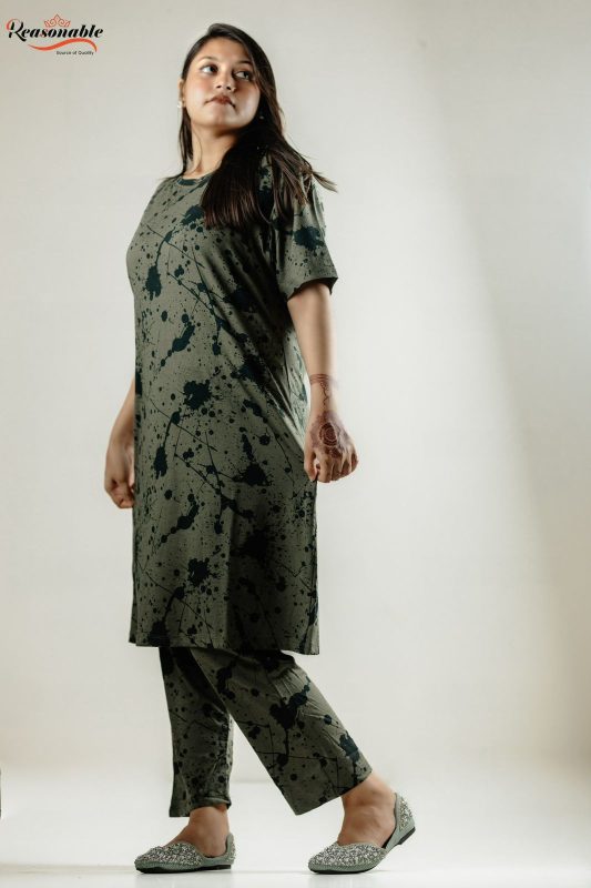 Women’s Premium Drop shoulder T-shirt & pajama Set 2Pcs-Ovida