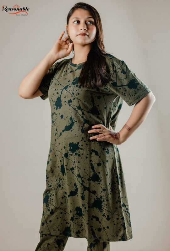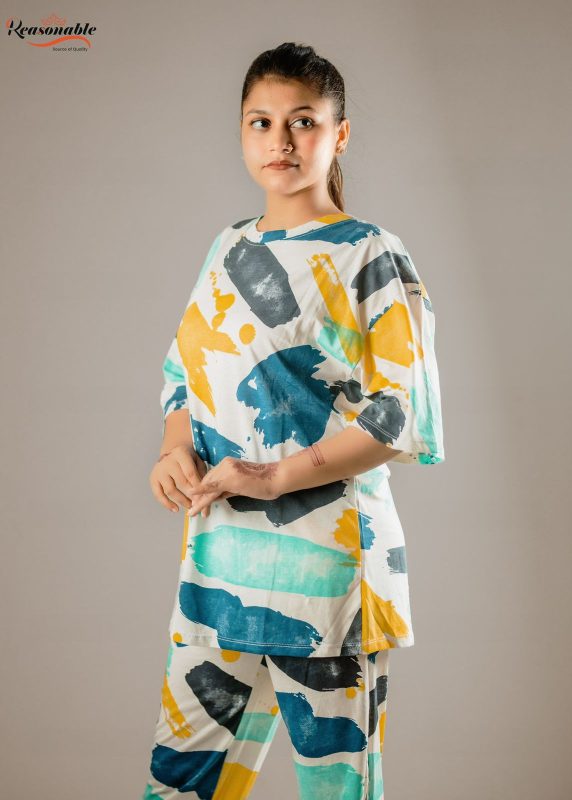 Women’s Premium Drop shoulder T-shirt & pajama Set 2Pcs-Multi