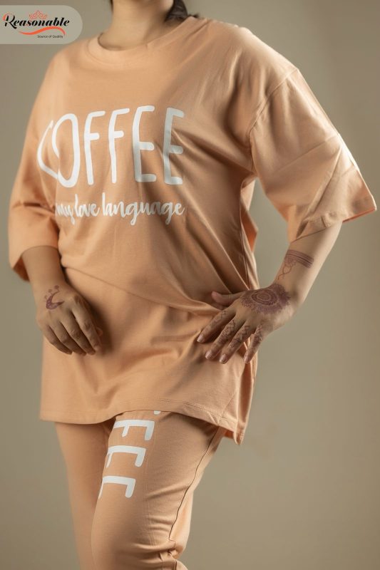 Women’s Premium Drop shoulder T-shirt & pajama Set 2Pcs-Peach