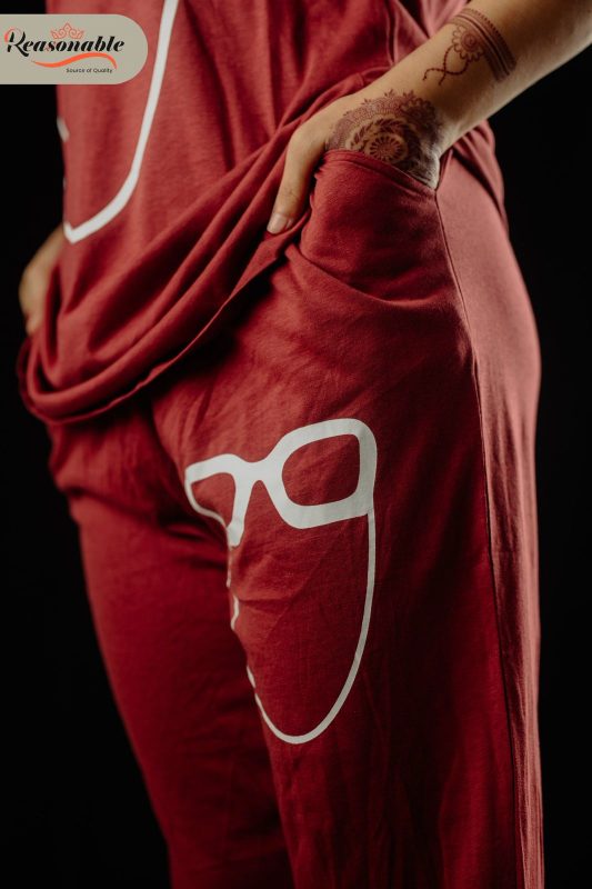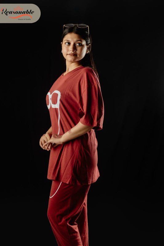 Women’s Premium Drop shoulder T-shirt & pajama Set 2Pcs-Red