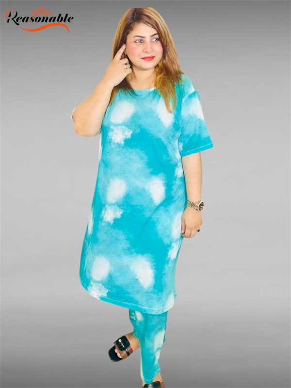 Women’s Premium Long T-shirt & pajama Set 2pc-Pastel Blue Tie-Dye