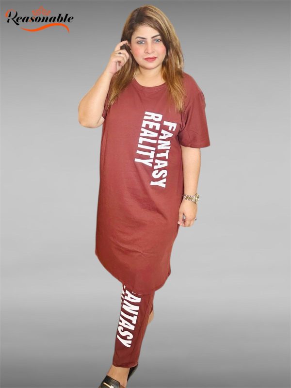 - Women’s Premium Long T-shirt & pajama Set 2pc-Reddish Brown
