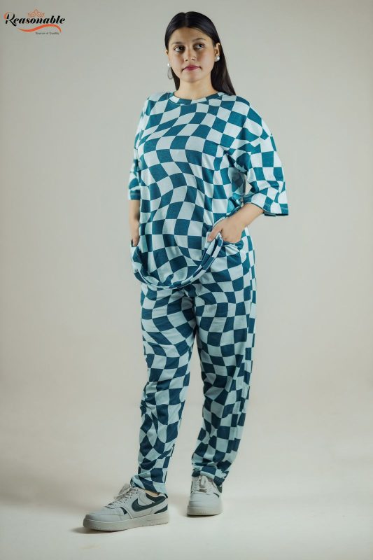 Women’s Premium Drop shoulder T-shirt & pajama Set 2Pcs-Turquoise