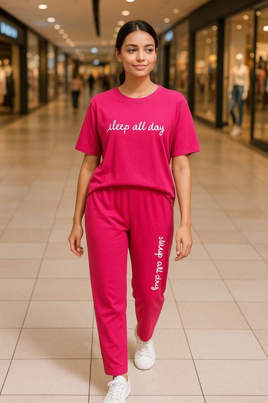 Women’s Premium Drop shoulder T-shirt & pajama Set 2Pcs-Mezenda