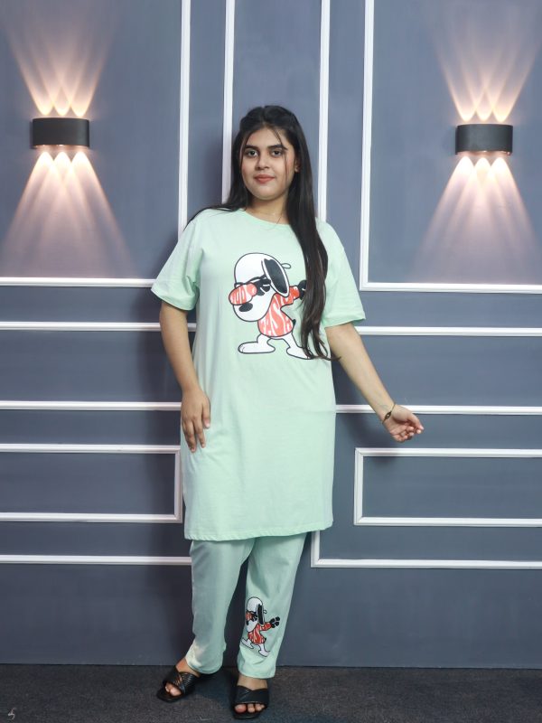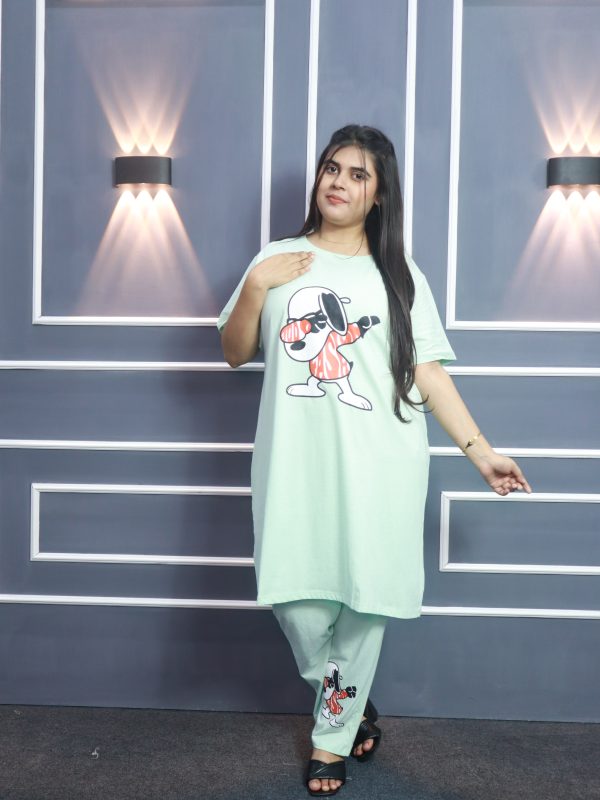 Women’s Premium Long T-shirt & pajama Set 2pc-Light Green