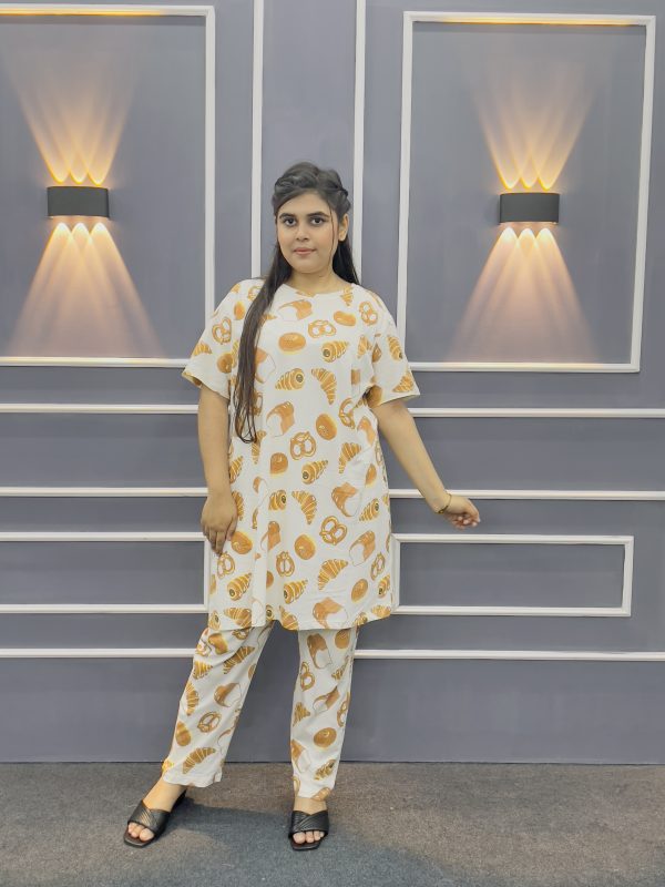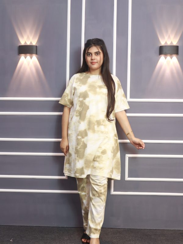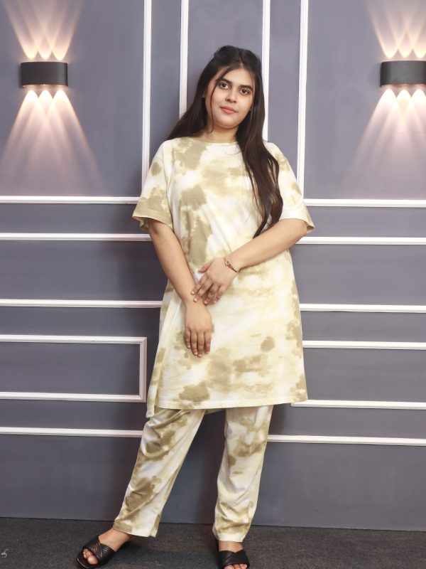 Women’s Premium Long T-shirt & pajama Set 2pc-Cream Batik