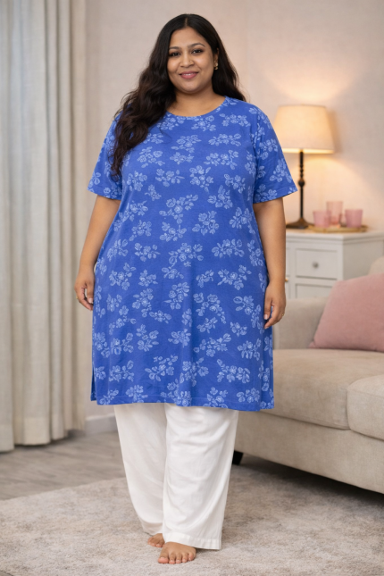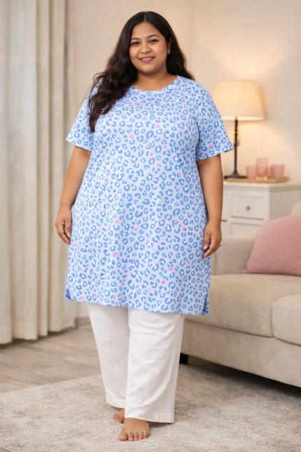 - Women’s Premium Long T-shirt & pajama Set 2pc-Blue
