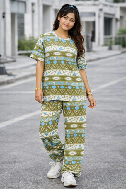 Women’s Premium T-shirt & pajama Set 2pcs-Olive Green