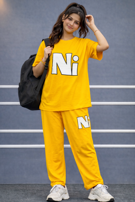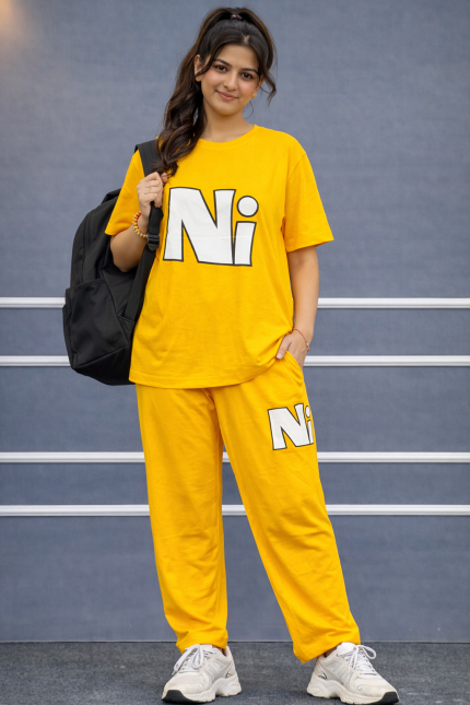 Women’s Premium T-shirt & pajama Set 2PC-Yellow