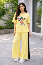 Women’s Premium Drop shoulder T-shirt & pajama Set 2Pcs-Yellow