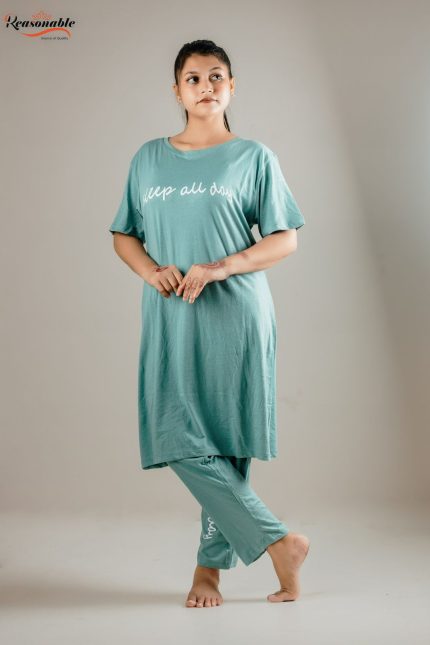 Women’s Premium Long T-shirt & pajama Set 2pc-Mint Green