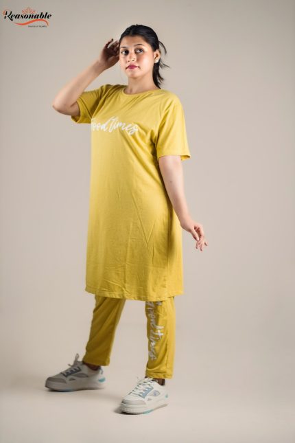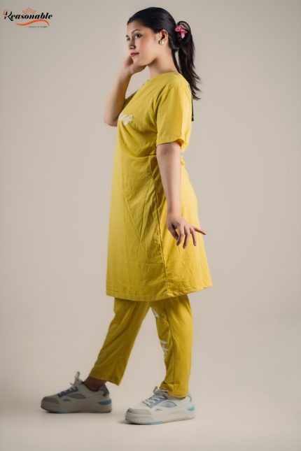 Women’s Premium Long T-shirt & pajama Set 2pc-Mustered Yellow