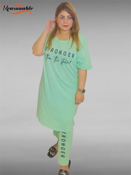Women’s Premium Long T-shirt & pajama Set 2pc-Mint